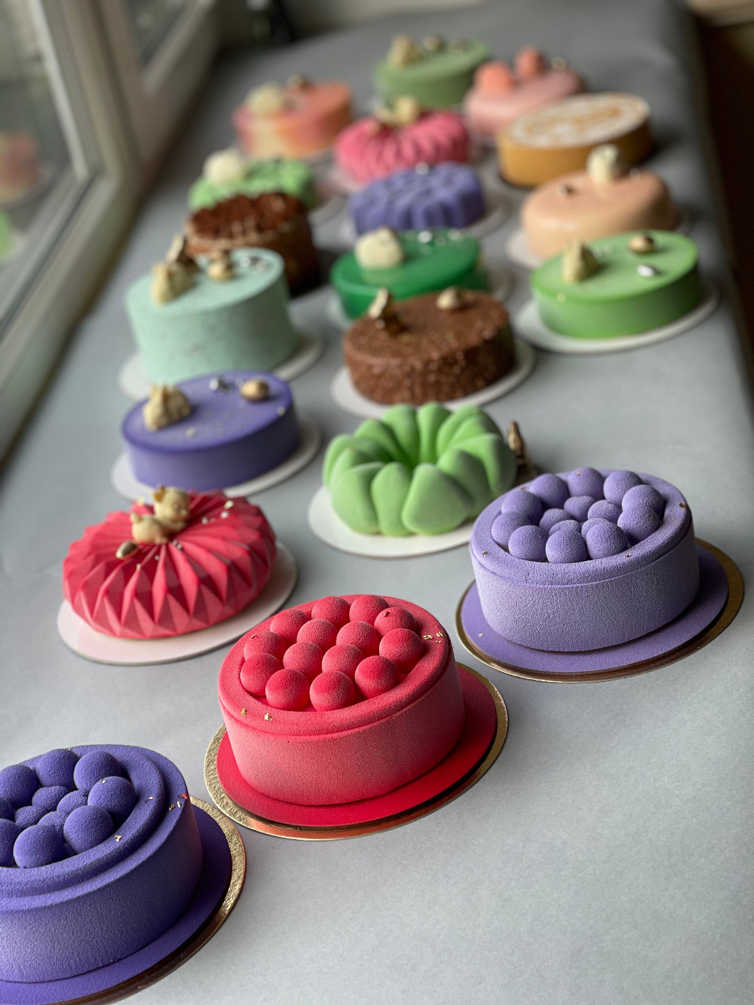 Platus prancūziškų desertų spektras – nuo klasikinių tortų iki modernių skulptūruojamų desertų.